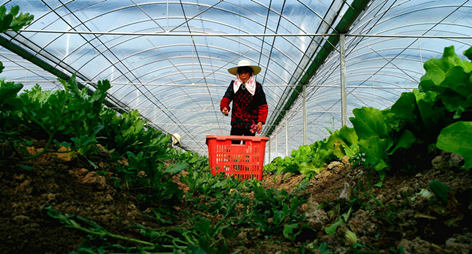 An impoverished farmer harvests vegetables in a high-efficiency greenhouse in Wanshan township, Lujiang county of east China’s Anhui province. In recent years, the county has been committed to promoting five 6,667-hectare high-quality and efficient agricultural projects to lift poor households out of poverty and help them increase their income at home. (Photo from People’s Daily Online)