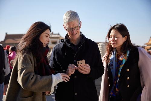 Apple CEO Tim Cook visits the Palace Museum during his visit to Beijing on Friday, March 22, 2019. [Photo provided to China News by Apple Inc.]