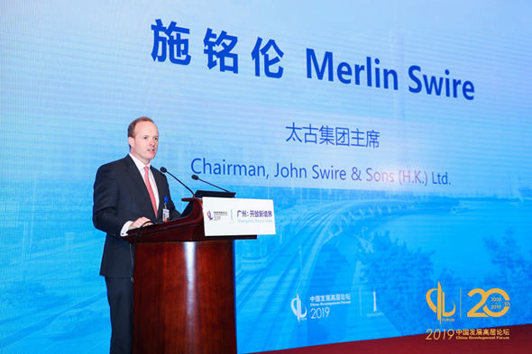 Merlin Swire, chairman of the John Swire & Sons (H.K.) Ltd., said that since the reform and opening up, the Guangzhou municipal government has actively encouraged foreign investors including the Swire Group to come and invest in Guangzhou. They will continue to invest in Guangzhou and Greater Bay Area and develop together with Guangzhou.