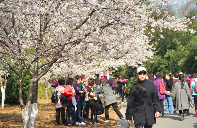 “Yuyuantan Park is the place where you can see more cherry blossom in the city. Flowers bloom earlier than other places, and there are various species here,” said one visitor, adding that she comes every year. “The cherry blossom this year is great because the climate is good, without any heavy wind or rain.”