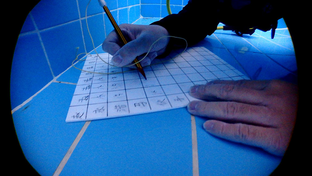 A student with autism writes a story underwater in Guangzhou. Provided to China Daily