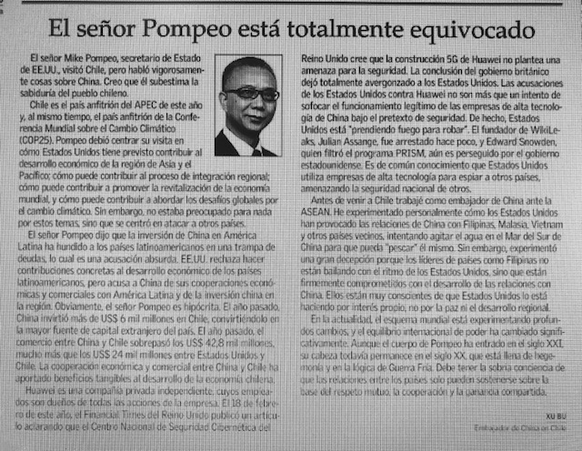 Chinese Ambassador to Chile: Pompeo is "completely wrong"