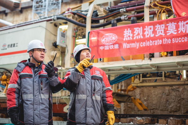 Chinese staff work at the construction site of the Moscow subway project undertaken by China Railway Construction Corporation Limited (Photo provided by CRCC)