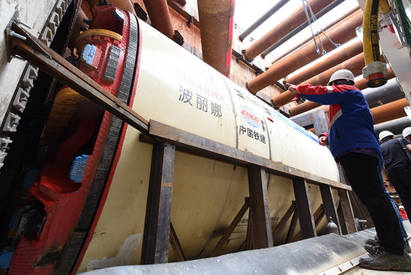 A large tunnel-boring machine developed by China Railway Construction Corp. dispatched for the subway project in Moscow in June, 2018.