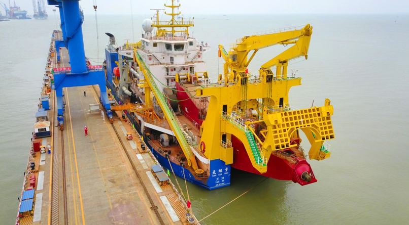 Asia’s largest dredging vessel Tiankun starts maiden voyage, after completing the customs clearance procedures on March 12, 2019. The dredger is independently developed and built by China. (Photo by People’s Daily Online)