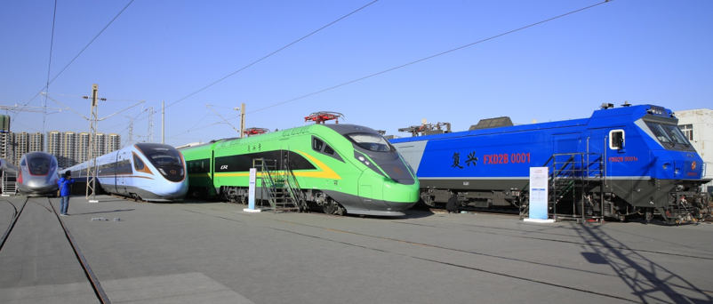 Fuxing bullet trains are exhibited at the China Railway Science and Technology Innovation Achievement Exhibition, December 25, 2018. The exhibition was opened at the China National Railway Track Test Centre, Beijing on December 24, 2018. The exhibition, hosted by China Railway Corporation, displayed a batch of advanced railway technologies and equipment independently developed by China, including the 17-carriage Fuxing bullet train running at 350-KPH, 8-carriage Fuxing bullet train running at 250-KPH, and a Fuxing model with a centralized power system that runs at 160 KPH. In addition, the new coatings for the high speed trains running on the Beijing-Zhangjiakou Railway were also unveiled for the first time at the exhibition. (Photo by People’s Daily Online)