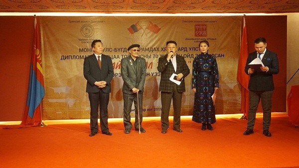 The exhibition entitled "Friendship-70 years" is organized by the Chinese Cultural Center in Ulan Bator and Mongolia's Choijin Lama Temple Museum.