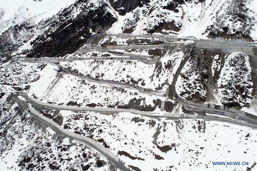 Aerial photo taken on April 11, 2019 shows the highway to Medog County at the entrance of the Galung Pass tunnel, Nyingchi City of southwest China's Tibet Autonomous Region. Medog, meaning "Secret Lotus" in the Tibetan language, is located in Nyingchi of southeast Tibet. Being on the lower reaches of the Yarlung Zangbo River and the south of the Himalayas, Medog County boasts of amazing natural landscapes due to its unique geographical position. Before the traffic opened, people could not arrive in Medog except for walking. Getting in and out of Medog was a dangerous journey. Frequent natural disasters such as avalanches, landslides, and mudslides blocked visitors from the outside world. The construction of roads to Medog is a tough task because of the complicated geological conditions and disastrous weather. With several attempts thwarted in the last decades, a 117-kilometer highway connecting Medog with neighboring Bomi County finally opened on Oct. 31, 2013. The completion of the Medog highway not only promoted the communication between Medog and the outside world, but also benefited the poverty relief of border ethnic minorities. Crude stilted houses have been replaced with modern houses consisting of complete facilities. Commodity prices have been lowered to a level similar with the outside world. The local economy especially tourism develops fast in recent years, unfolding to the world a new Medog with its mysterious beauty. (Xinhua/Li Xin)