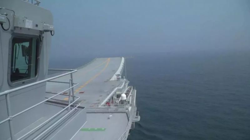 A photo of China's first domestically made aircraft carrier during its fifth sea trial. (Photo/CCTV)