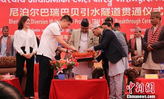 Nepali Prime Minister KP Oli attends the TBM Tunnel Breakthrough Ceremony. (Photo/Chinanews.com)