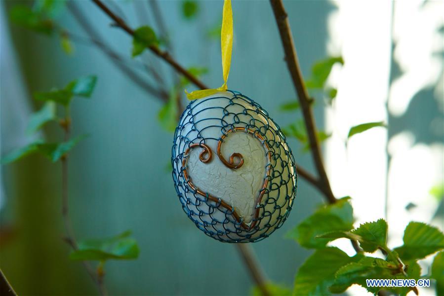 A hand-painted Easter egg is seen during Easter celebration in Prague, the Czech Republic, April 22, 2019. (Xinhua/Dana Kesnerova)