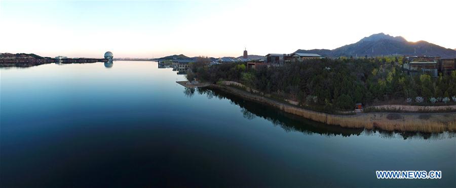 Aerial photo taken on April 3, 2019 shows the scenery of Yanqi Lake in Beijing, capital of China. The second Belt and Road Forum for International Cooperation is to be held on April 25-27 in Beijing. (Xinhua/Cai Yang)