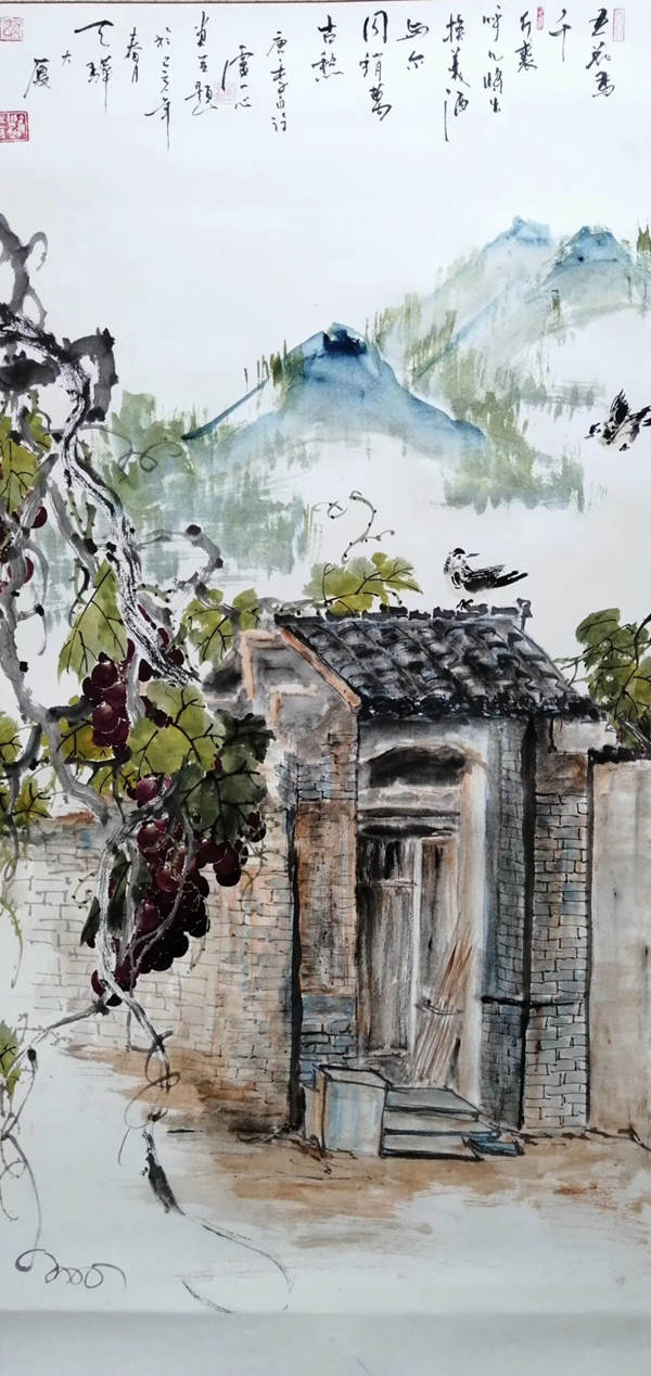 Lu Yixin’s ink paintings on display in the Cultural Palace of Nationalities in Beijing.