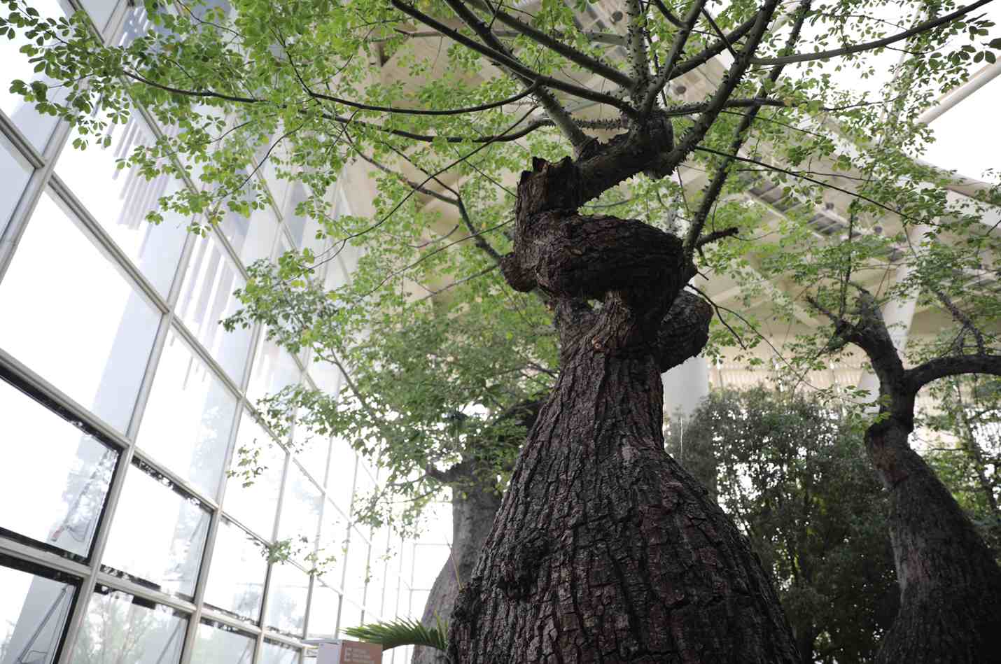 Photo taken on April 29, 2019 shows a white silk floss tree at the Botanic Garden for Beijing International Horticultural Exhibition 2019. Its thick trunk stores plenty of water, looking like the belly of Maitreya Buddha. (People's Daily Online/Xian Jiangnan)
