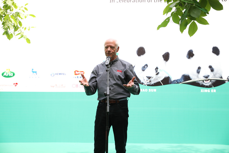 Bengt Holst, Director of Research and Conservation in Copenhagen Zoo, talks about the two pandas now residing at his zoo. (People's Daily Online/Sheng Chuyi)