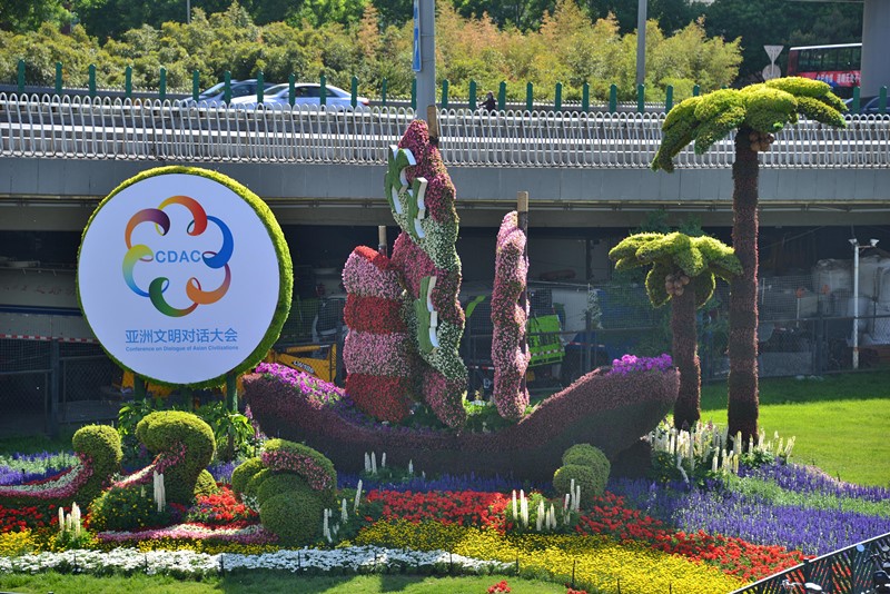 Photo shows flower beds in Beijing established to celebrate the Conference on Dialogue of Asian Civilizations, May 13, 2019. (Photo by Fan Jiashan/People’s Daily Online)