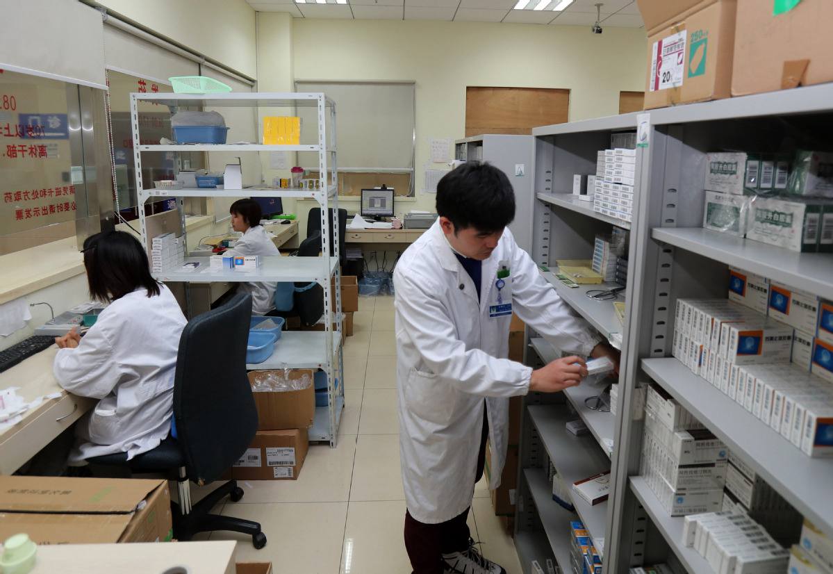 Staff members work at a hospital's pharmacy in Shanghai in April. [Photo/Xinhua]