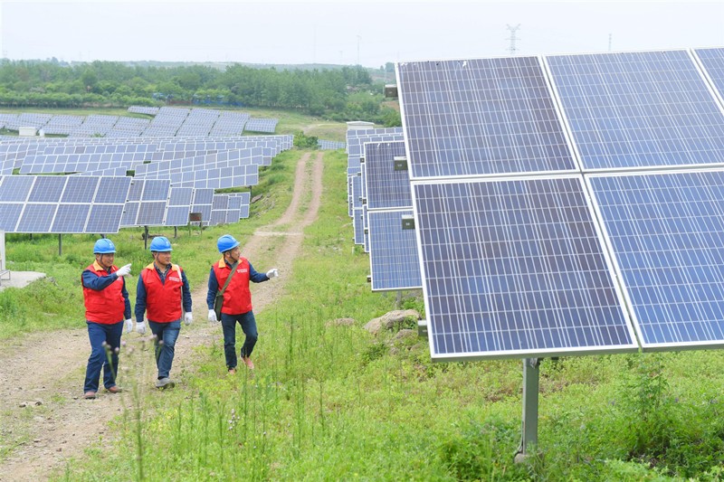 On May 27, 2019, electrician inspected the grid-connected equipment at the photovoltaic power plant on the hill near Yangying Village, Lai’an County, Anhui Province. (Photo by Song Weixing with People’s Daily Online)