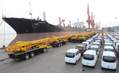 China-produced cars to be shipped overseas at a port in Jiangsu province. (Photo/Xinhua)