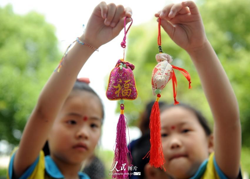 Wearing a sachet is one of the traditional customs of the Dragon Boat Festival. Sachets are usually made of five-color silk thread, or colored satin or cloth wrapped with cotton and then embroidered with colored silk. People typically filled the sachets with a variety of fragrant herbal medicine to repel insects and avoid illnesses. Children wear sachets to ward off evil spirits during the Dragon Boat Festival. Nowadays, sachets come in various shapes and are a common handicraft. In some cities in southern China, young men and women also use sachets to express their love.
