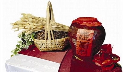Drinking realgar wine in the Dragon Boat Festival period is a prevalent custom in the Yangtze River basin area. Realgar wine is a kind of liquor or yellow wine made by soaking realgar powder. As a kind of traditional Chinese medicine, realgar can be used as an antidote and insecticide, so ancient people thought realgar could ward off snakes, scorpions, and other harmful insects and animals. There is an old saying that goes: "drink realgar wine and keep diseases away". The main ingredient of realgar is arsenic sulfide, which is poisonous. Therefore, people only add a small amount of realgar in wine, and it needs to be exposed to sunlight, sometimes from the first day of May to the fifth. Realgar wine is one of the "five yellow" dishes which are traditionally served during the Dragon Boat Festival in Jiangsu and Zhejiang area. The other four are yellow croaker, cucumber, eel and duck egg yolk, with each containing the Chinese character Huang (meaning yellow) in its name.