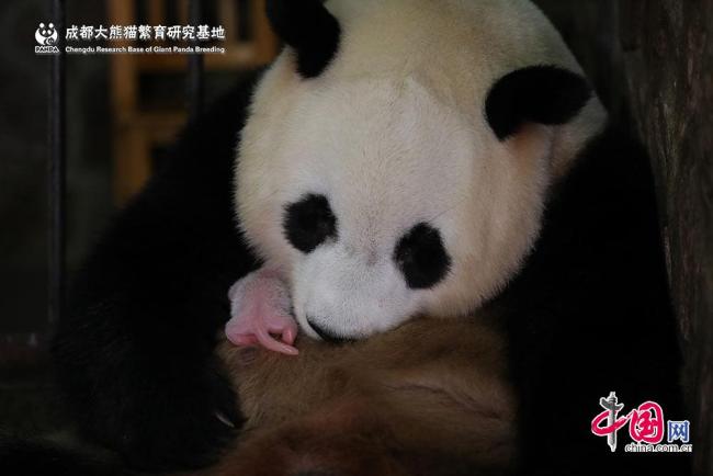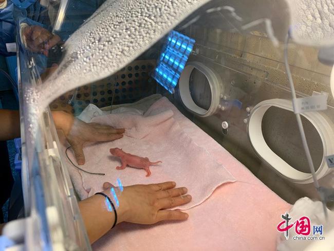 A female giant panda cub weighing 42.8 grams, about the weight of an average chicken egg and the world's lightest ever, was born in Chengdu, capital of southwest China's Sichuan Province, on Tuesday, June 11, 2019.[Photo: china.com.cn]