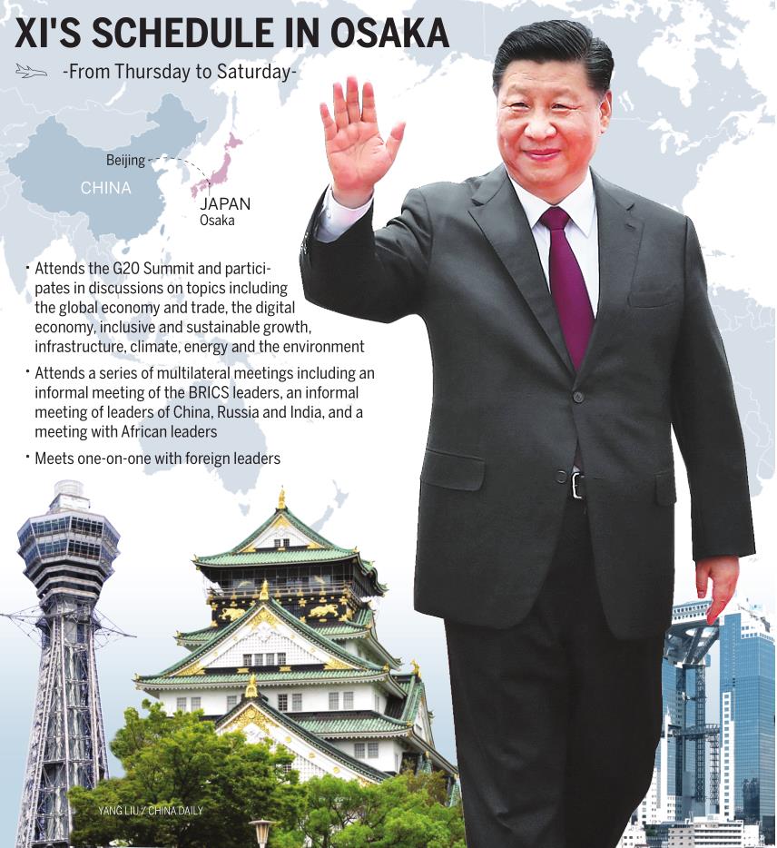 In a message posted on the G20's website, Japanese Prime Minister Shinzo Abe said Japan is determined to lead global economic growth at the Osaka summit by promoting free trade and innovation, achieving both economic growth and the reduction of disparities, and contributing to the development agenda and other global issues with the UN's Sustainable Development Goals at its core.