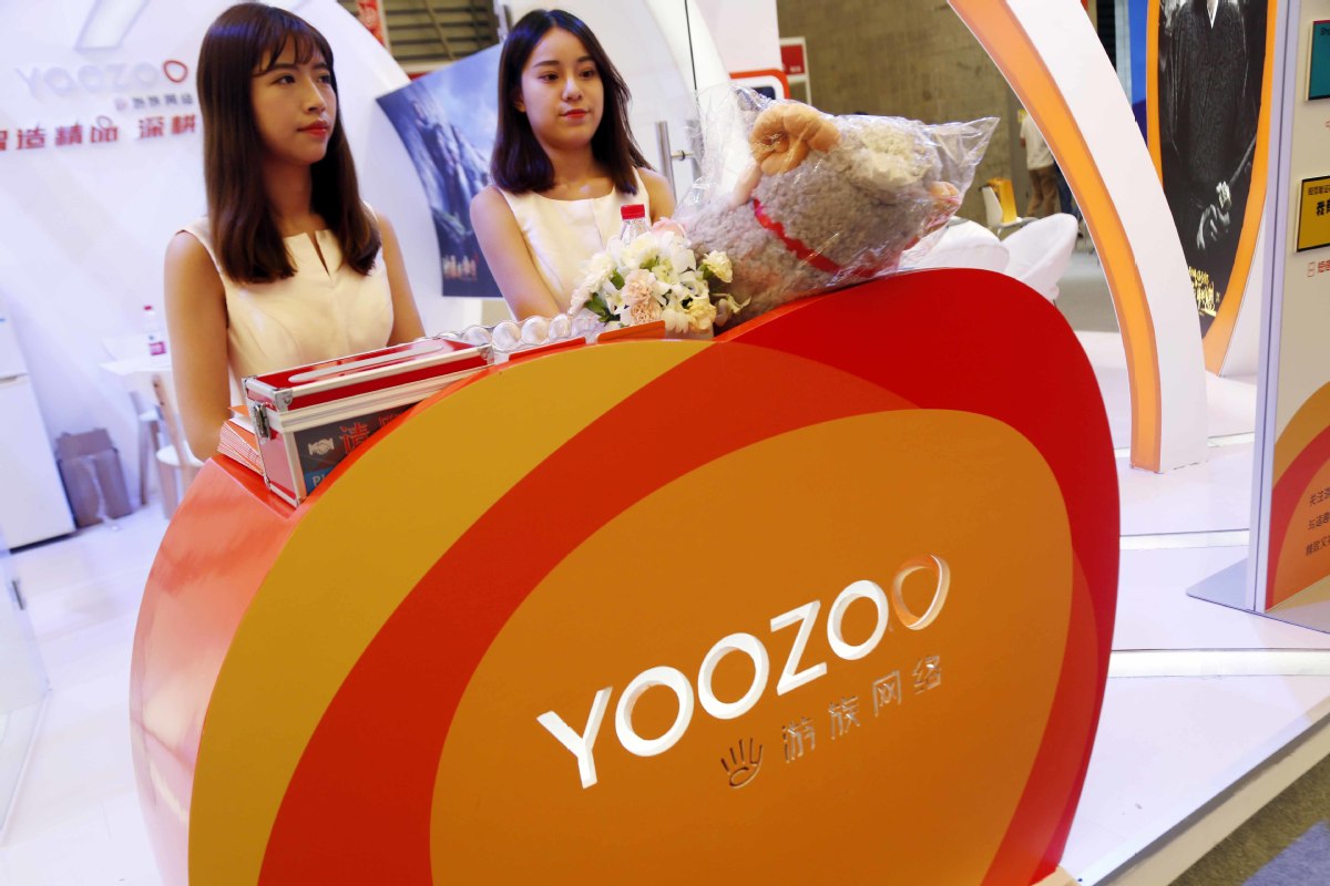 Employees of Yoozoo Games Co Ltd stand at the company's booth during a games exhibition in Shanghai. [Photo provided to China Daily]