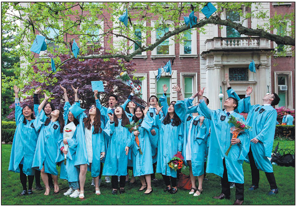 Chinese students take part in a graduation ceremony at Columbia University in New York. Guo Ke / Xinhua