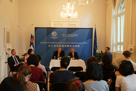 Embassy of Finland in China holds a press conference on Finland’s Presidency of the Council of the European Union on 11 July 2019. (Photo provided to People’s Daily Online)