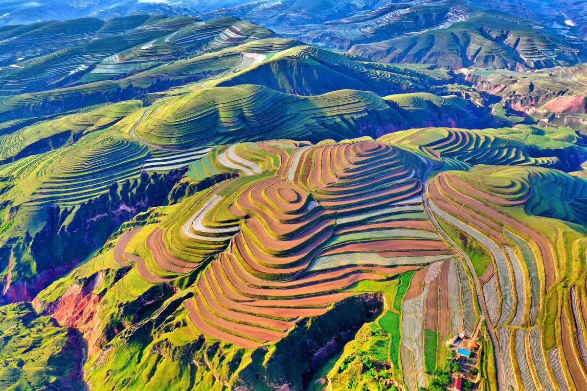 The dry land terraced fields on the mountains in Guyuan, Ningxia Hui autonomous region, have been transformed into rich colors of trees, grass and flowers. (Photo provided for chinadaily.com.cn)