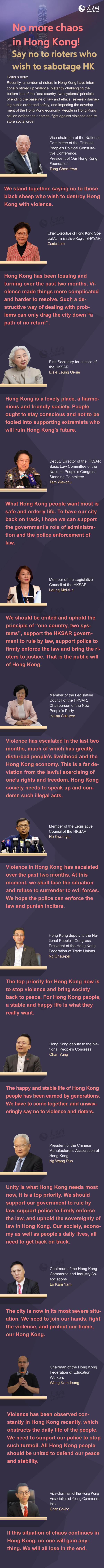 No more chaos in Hong Kong! Say no to rioters who wish to sabotage HK