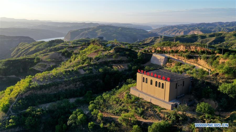 Aerial photo taken on Aug. 14, 2019 shows the Qiankunwan river bend along the Yellow River, China's second-longest waterway, on the border between Yanchuan County, northwest China's Shaanxi Province and Yonghe County, north China's Shanxi Province. (Xinhua/Tao Ming)