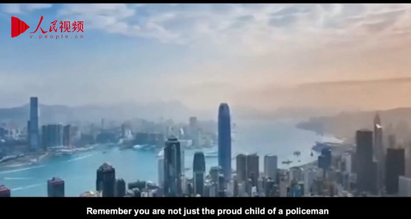 Beijing, Aug. 18 (People’s Daily Online) -- During a rally held in Hong Kong on Aug. 17 to voice out people's demand for peace and stability in Hong Kong, a video was played, featuring a policeman's wife's letter to her child.