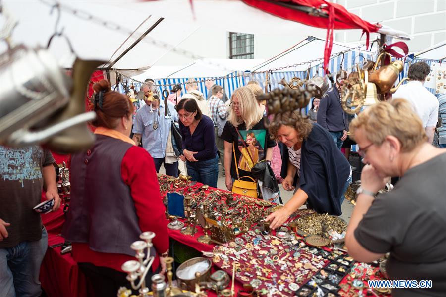 People visit a vintage fair in Moscow, Russia, on Aug. 18, 2019. (Xinhua/Bai Xueqi)