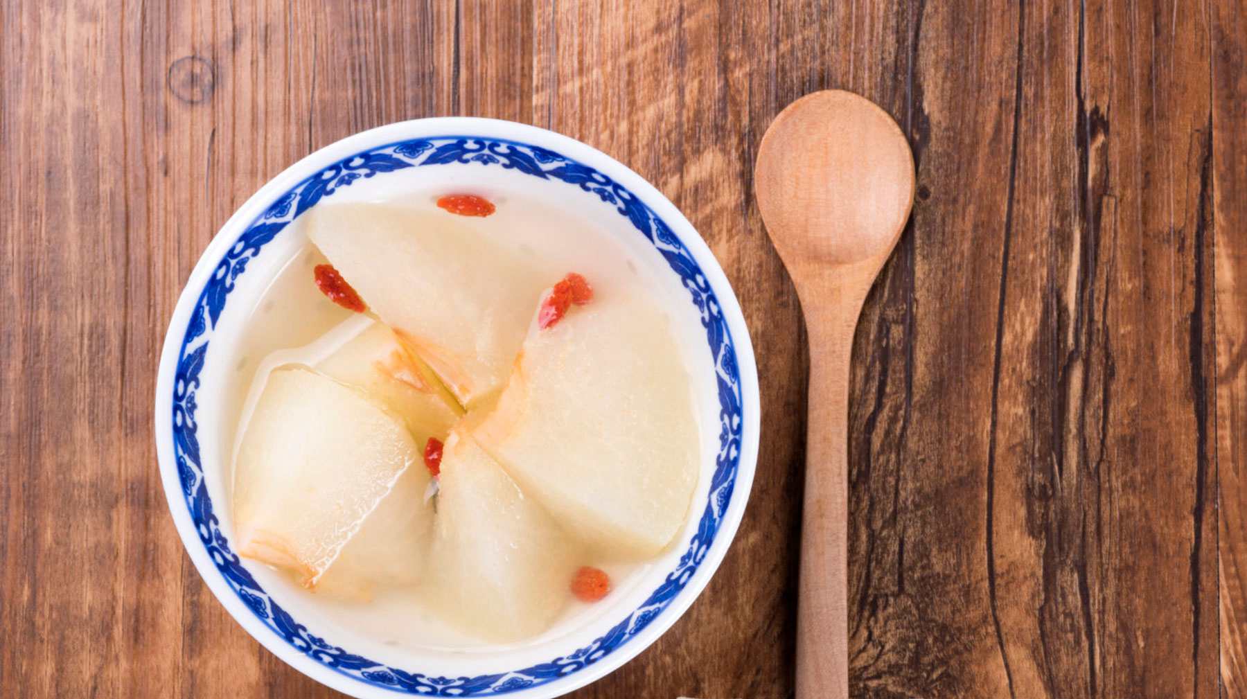 Snow fungus, also called silver ear fungus or white jelly mushroom, is traditionally used in sweet dishes in Chinese cuisine. While tasteless, it is valued for its viscous texture as well as its supposed medicinal benefits. Pears are a good source of dietary fiber and a good source of vitamin C. Snow fungus and pear stew might provide relief and prevent coughs, asthma and constipation.