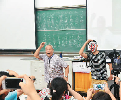 Hou Shaokui (left), a Kunqu artist, teaches in Peking University. (Photo via Peking University)