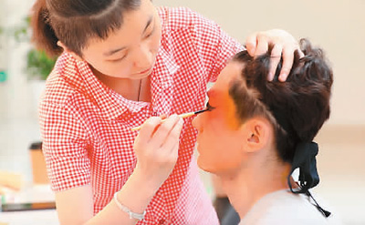 A student puts on make up. (Photo via Art Center of Tsinghua University)