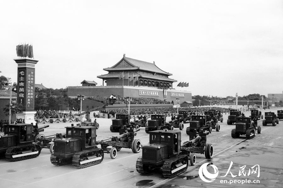 1955 Tractors carry large-caliber artillery past Tiananmen Square (Taken by anonymous)