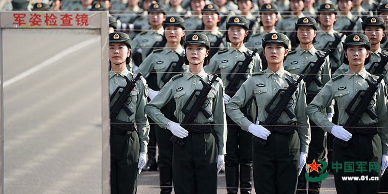 15:10 Female soldiers check their movements in front of a mirror. (Photo/www.81.cn)