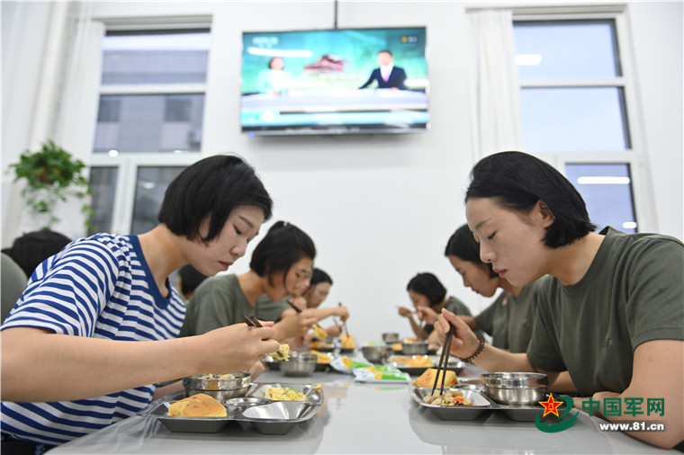 6:20 Female soldiers have breakfast at a canteen. (Photo/www.81.cn)