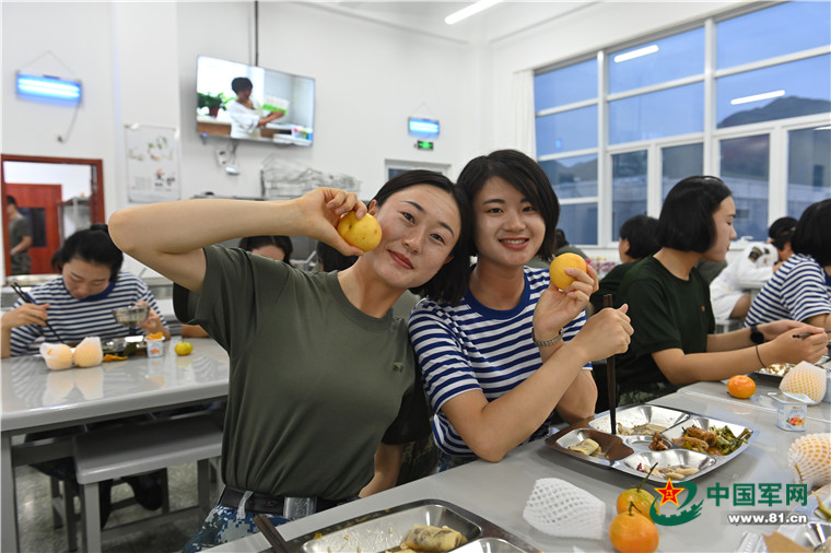 18:10 Female soldiers enjoy supper at canteens. (Photo/www.81.cn)