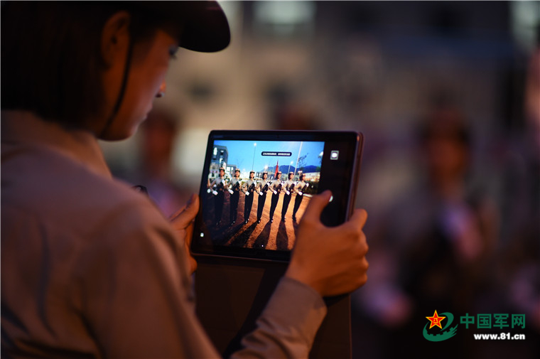 20:45 A female soldier captures the training with a tablet computer to help everyone improve their movement. (Photo/www.81.cn)