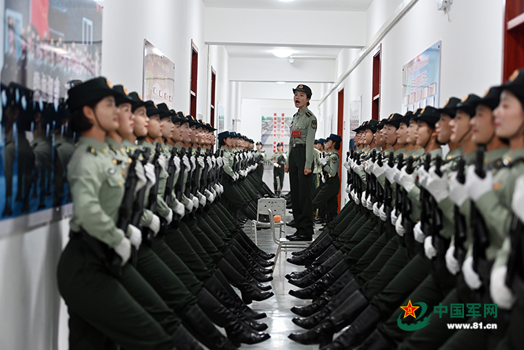 8:45 An instructor corrects the movements of female soldiers. (Photo/www.81.cn)