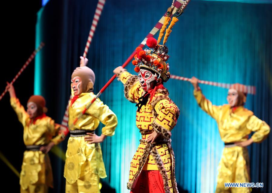 Students perform Peking Opera at Daning Theater in east China's Shanghai, Sept. 24, 2019. Students from Yangtze River Delta region put on a performance in Shanghai Tuesday to celebrate the 70th anniversary of the founding of the People's Republic of China. (Xinhua/Liu Ying)