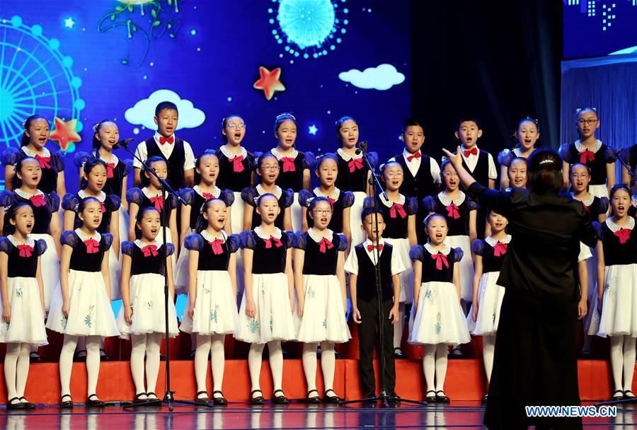 Students sing in a chorus performance at Daning Theater in east China's Shanghai, Sept. 24, 2019. Students from Yangtze River Delta region put on a performance in Shanghai Tuesday to celebrate the 70th anniversary of the founding of the People's Republic of China. (Xinhua/Liu Ying)