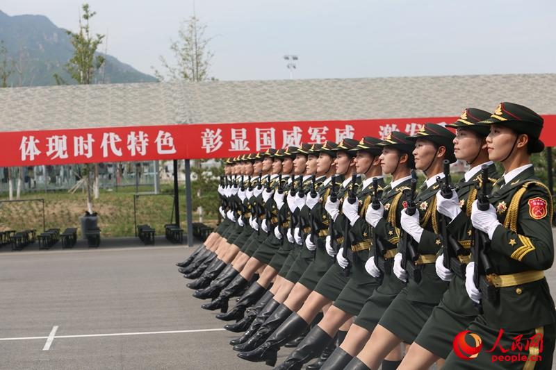 Female honor guards train for the military parade. (People's Daily Online/Wang Zhengqi)