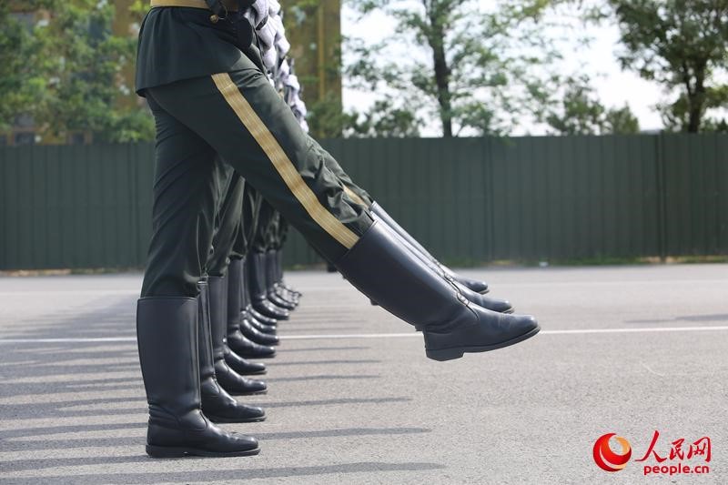 Soldiers swing their legs in unison high off the ground. (People's Daily Online/Wang Zhengqi)