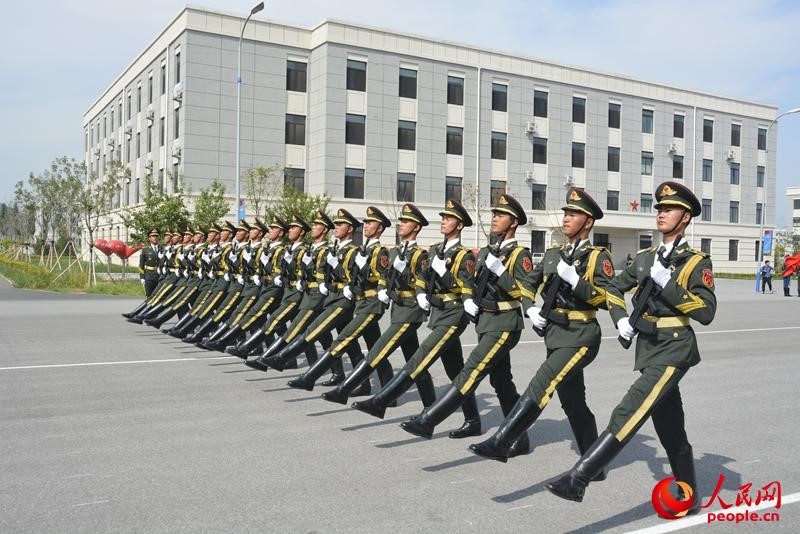 At the training site of the military parade, the soldiers are practicing their movements over and over again. They are sweating heavily, but they are spirited and determined. Their tall and straight postures, uniform steps, resonant voices form a beautiful view.