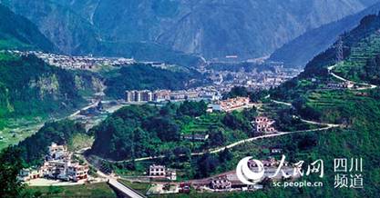 Yingxiu Town in Wenchuan County takes on a new look. (Photo via the Publicity Department of CPC Wenchuan County Committee)